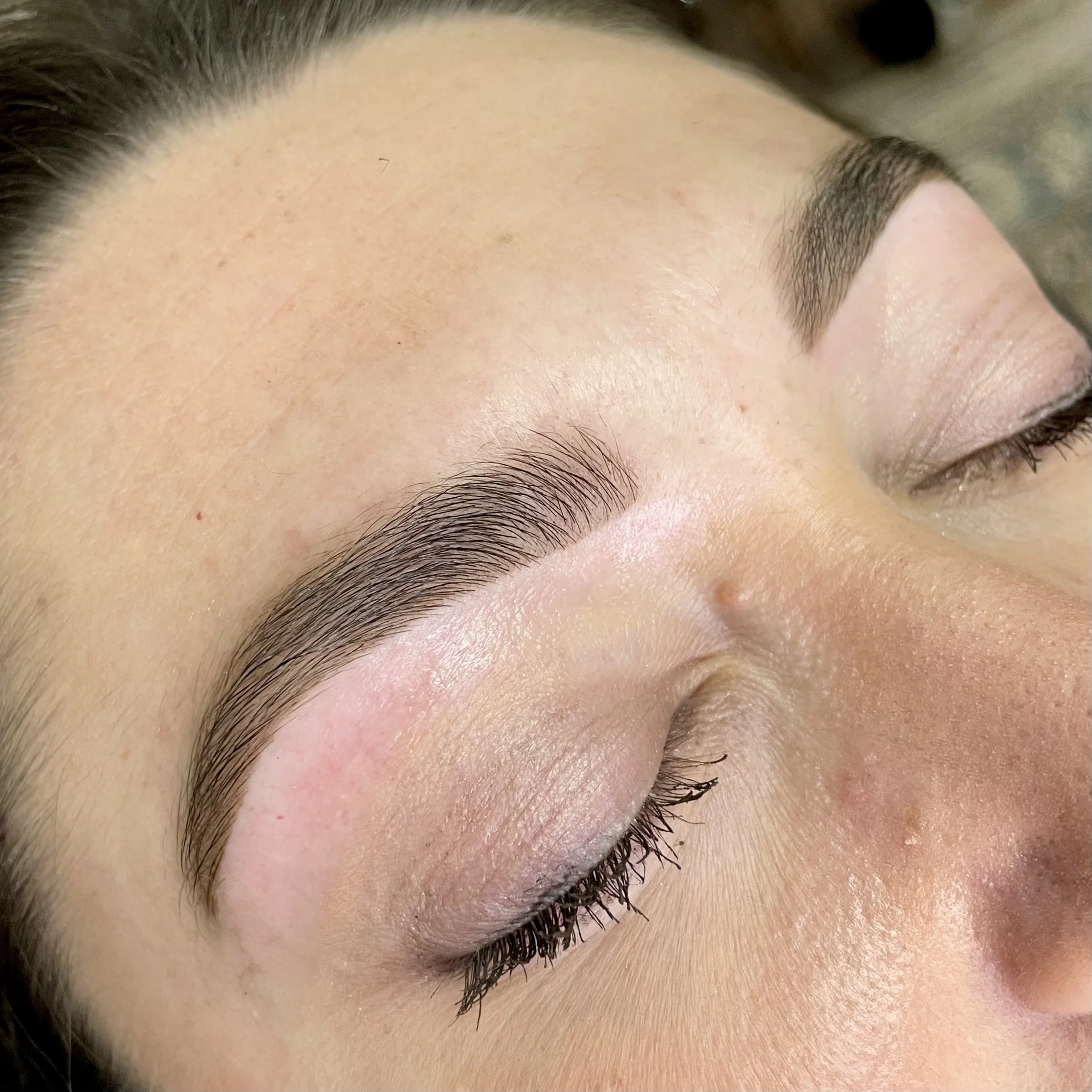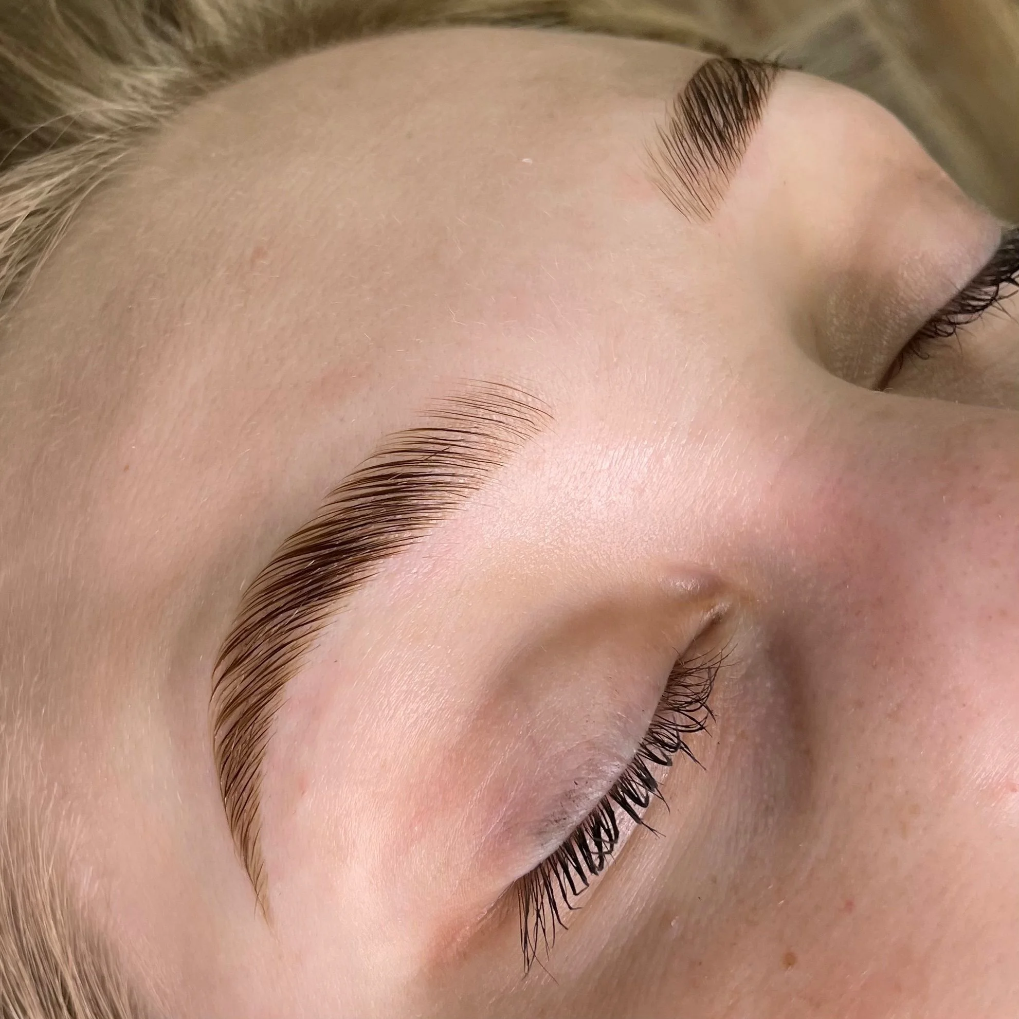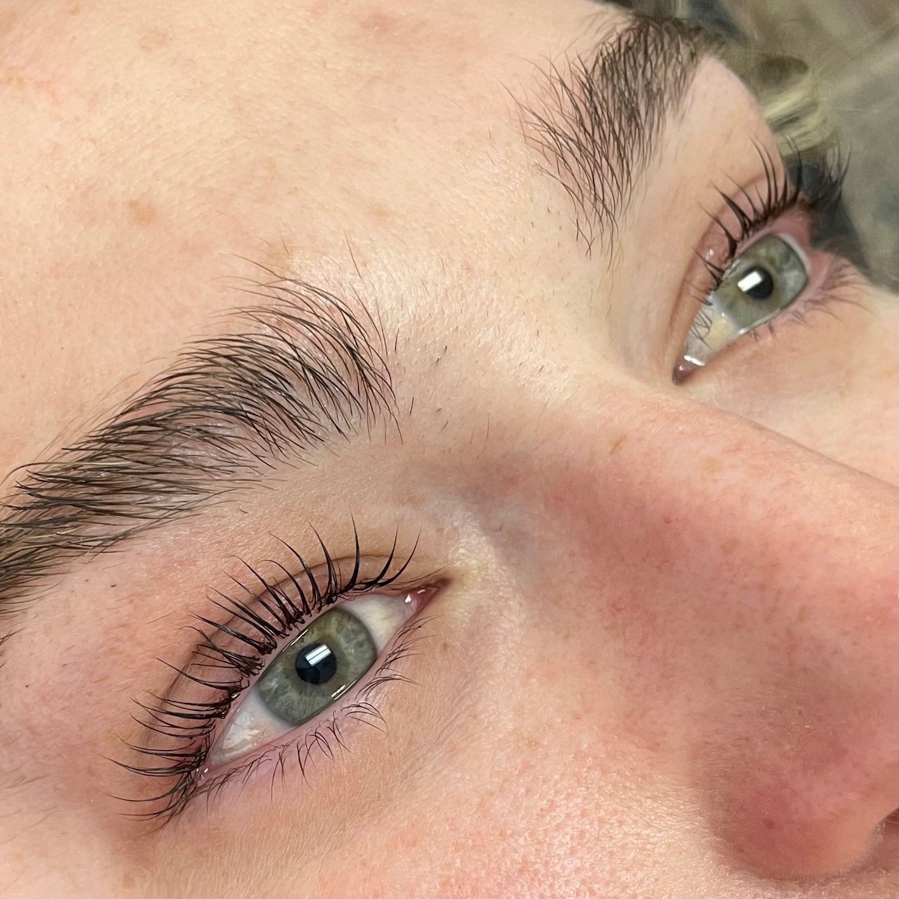 Brow lamination is a treatment that lifts and sets your brow hairs in place, creating a fuller, more defined look. It helps tame unruly brows and gives them a smooth, polished appearance that lasts for several weeks.